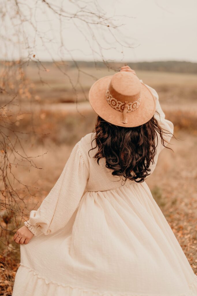 Und weil ich es liebe, wenn alles zusammenpasst, habe ich auch Accessoires wie Hüte und handgemachte Blumenkränze und Sträuße am Start.